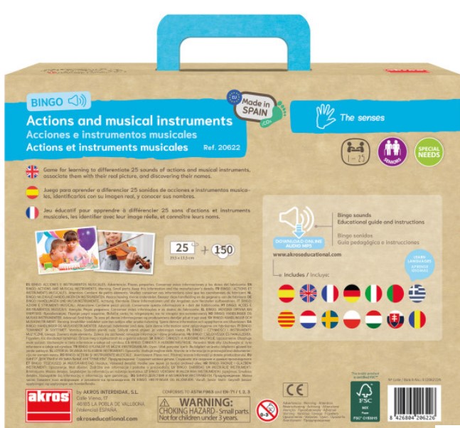 Met Bingo: De Geluiden Van Muziekinstrumenten En Acties ga je op een speelse manier geluiden herkennen en van elkaar onderscheiden. Daarbij wordt een koppeling gemaakt tussen afbeeldingen van muziekinstrumenten en acties met het bijbehorende geluid.