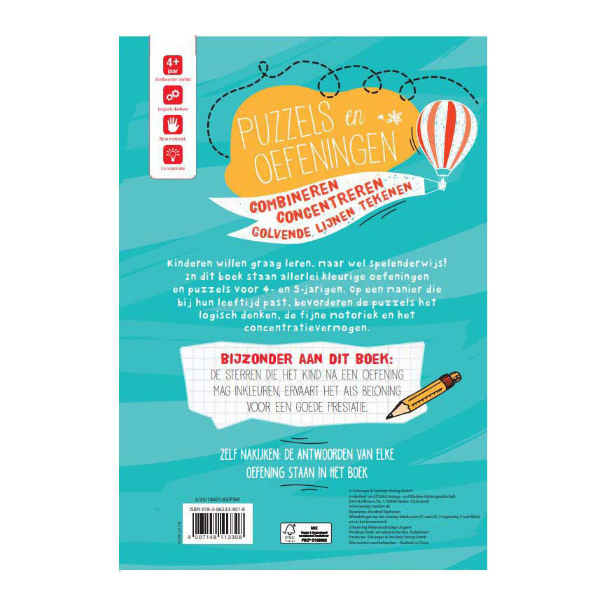 Leren wordt extra leuk met dit kleurrijke boek Puzzels En Oefeningen (4-5 jarigen). De opdrachten zijn gericht op combineren, concentreren en het tekenen van verschillende soorten lijnen. Ze sluiten perfect aan bij de ontwikkeling van kleuters en stimuleren logisch denken, fijne motoriek en concentratievermogen.