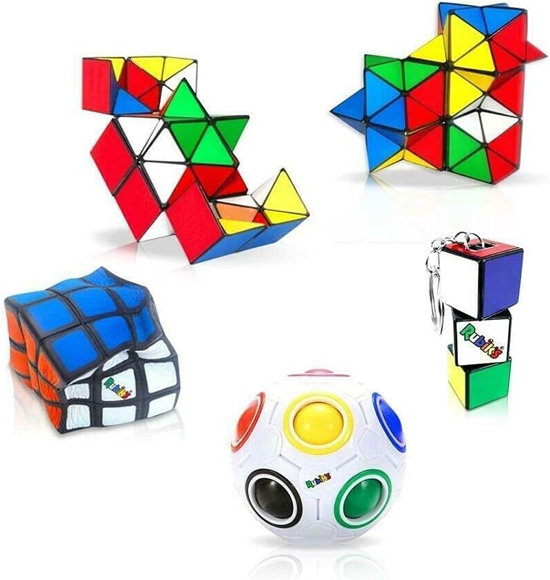De Rubik’s Mega Gift Set bevat maar liefst vijf! puzzels. Er zitten bijvoorbeeld twee stervormen bij. Deze stervorm heeft dezelfde uitdaging als de wereldberoemde kubus. Schuif en draai de verschillende delen van de puzzel om alle vlakken hun eigen kleur te geven. Het is een uitdagende en leuke puzzel voor jong en oud. Test hoe snel je de puzzel kunt oplossen en geniet van het unieke ontwerp! Ook zit er een puzzelbal in en een kubus met negen vlakken per zijde en een gave sleutelhanger.