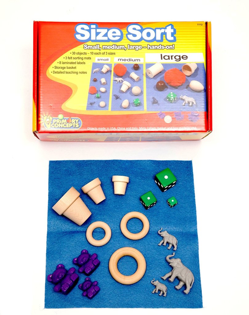 Kinderen beginnen te sorteren met twee maten: groot en klein. Daarna leren ze het verschil tussen klein, medium en groot.
